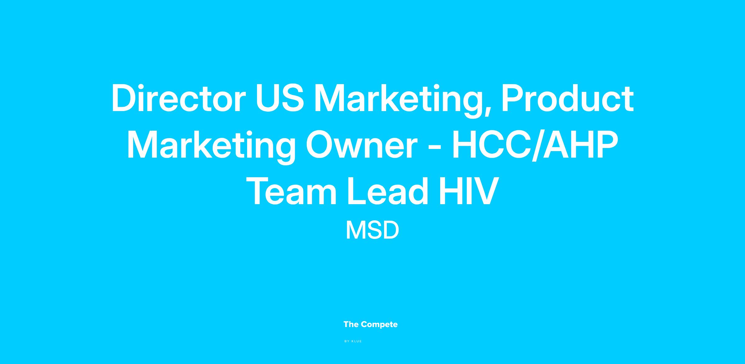 Director U.S. Marketing, Product Marketing Owner – HCC/AHP Team Lead, HIV