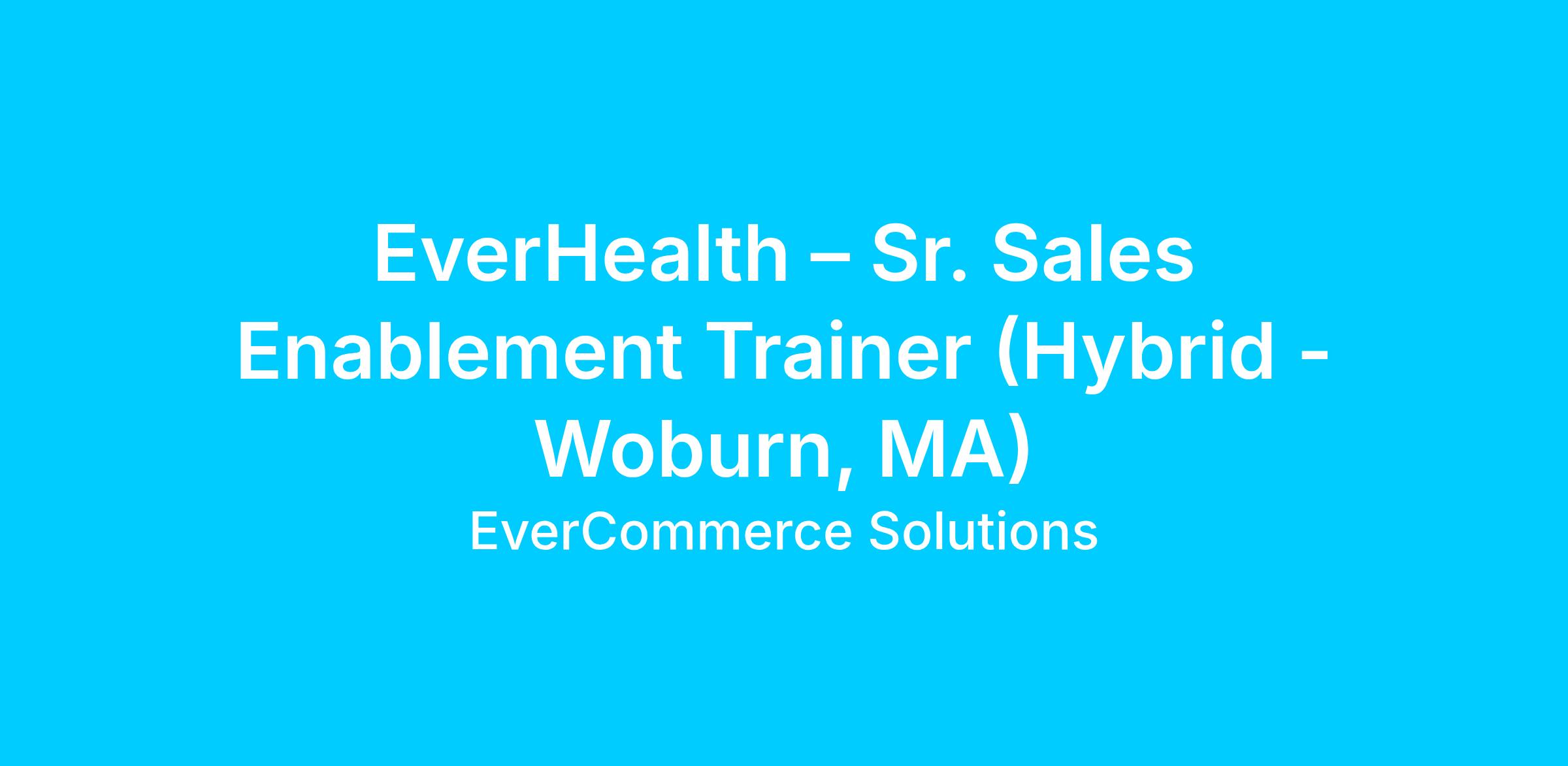 We are looking for a Senior Sales Enablement Trainer to join our Revenue Operations team in the EverHealth team. In this role, you will drive the education, training, and performance optimization of our sales teams. You will partner closely with sales managers, product teams, and product marketing to ensure alignment and increase team effectiveness at every stage of the sales cycle, from product demos to closing deals. The portfolio this role supports is our group of products that include EHR, Practice Management, RCM services.