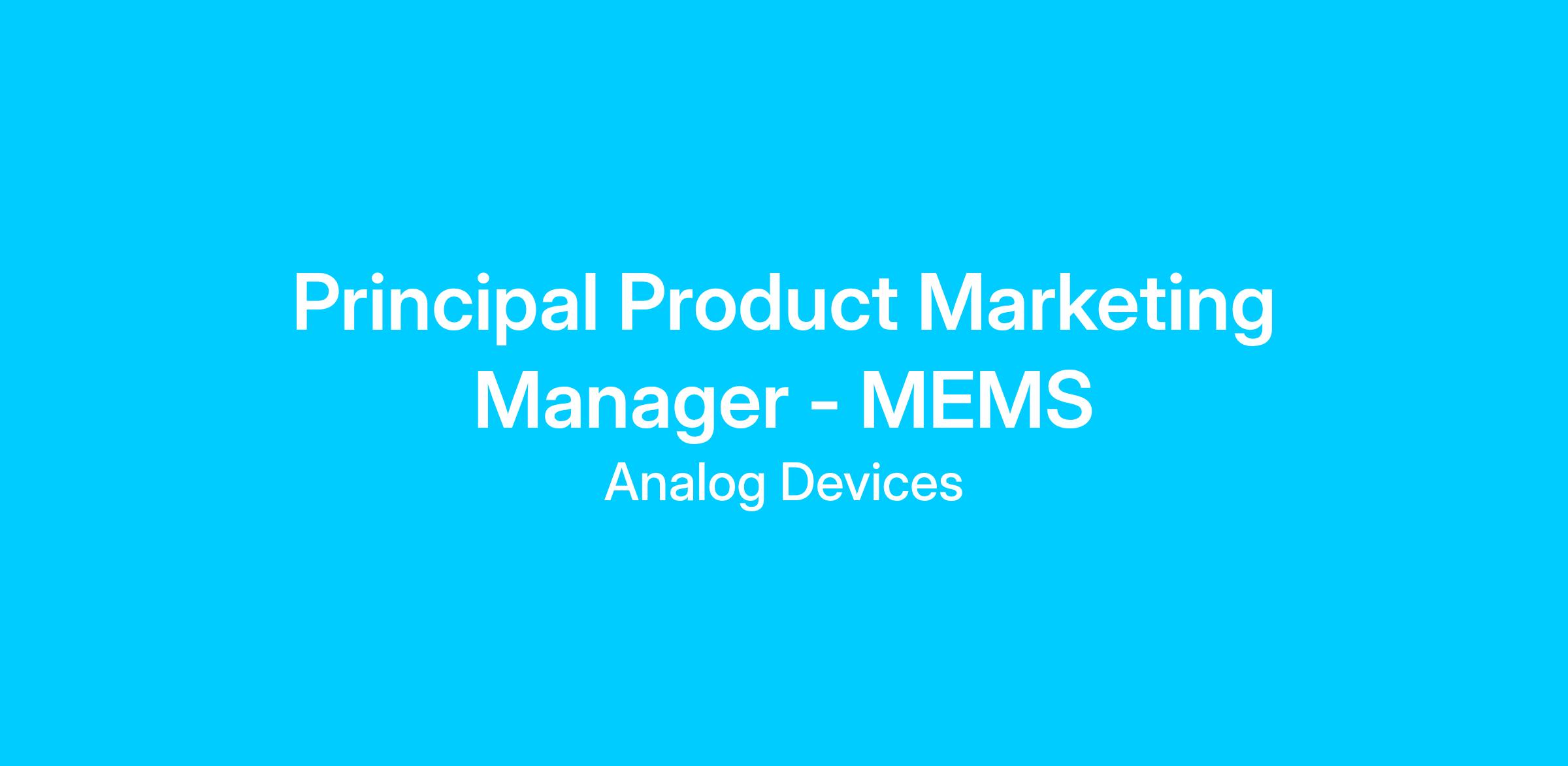 We are looking for a highly skilled Principle Product Marketing Manager to help drive our business and product management. The candidate will be responsible for the identification of emerging trends and opportunities and growing our business to capitalize on these applications. He/she will be responsible for the strategic direction of our product investments. An experienced leader and communicator, the successful candidate will work closely with engineering, ADI field sales and support teams and other internal stakeholders to nurture the development of industry-leading products and solutions.