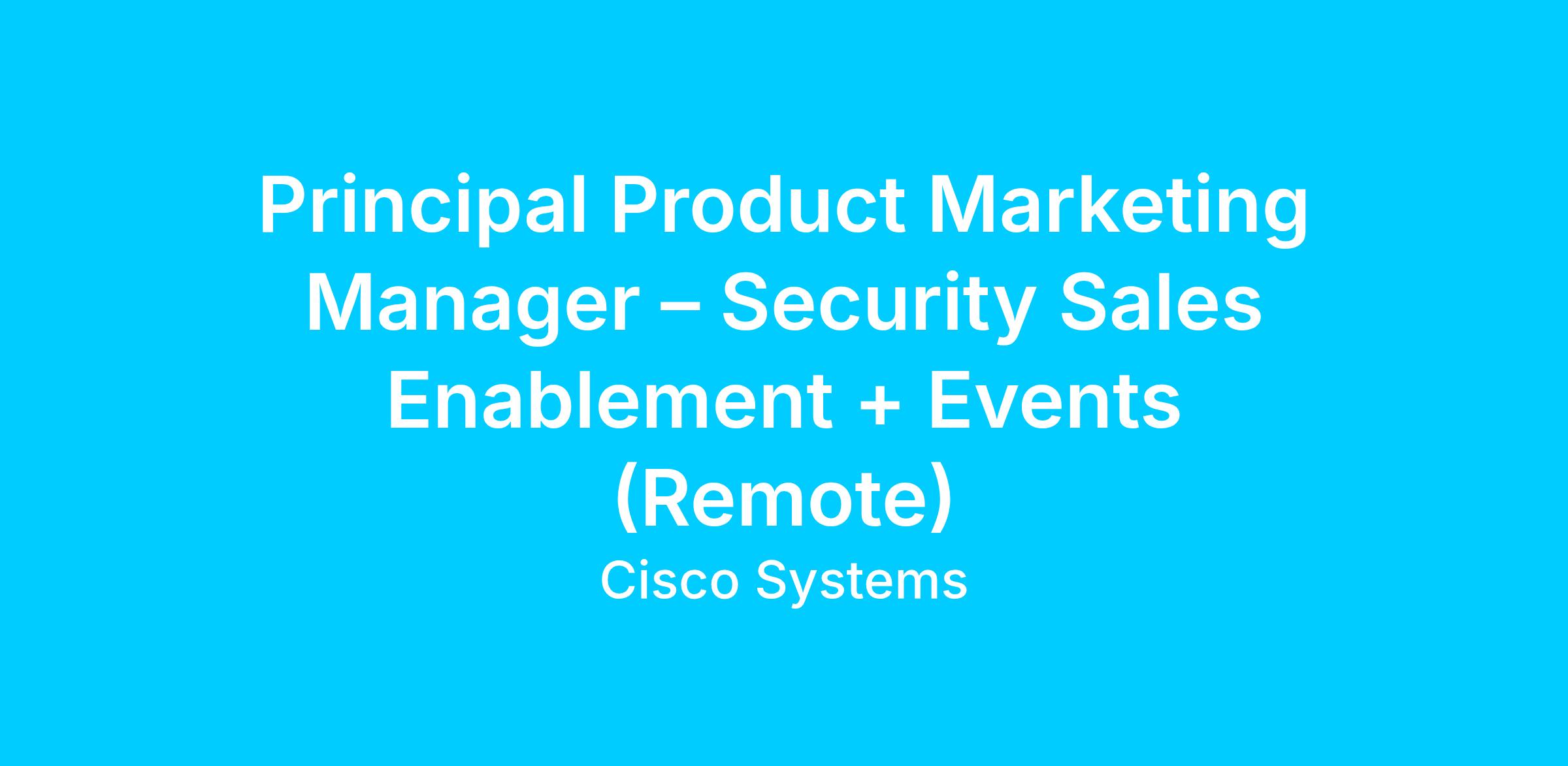 Principal Product Marketing Manager – Security Sales Enablement + Events (Remote)
