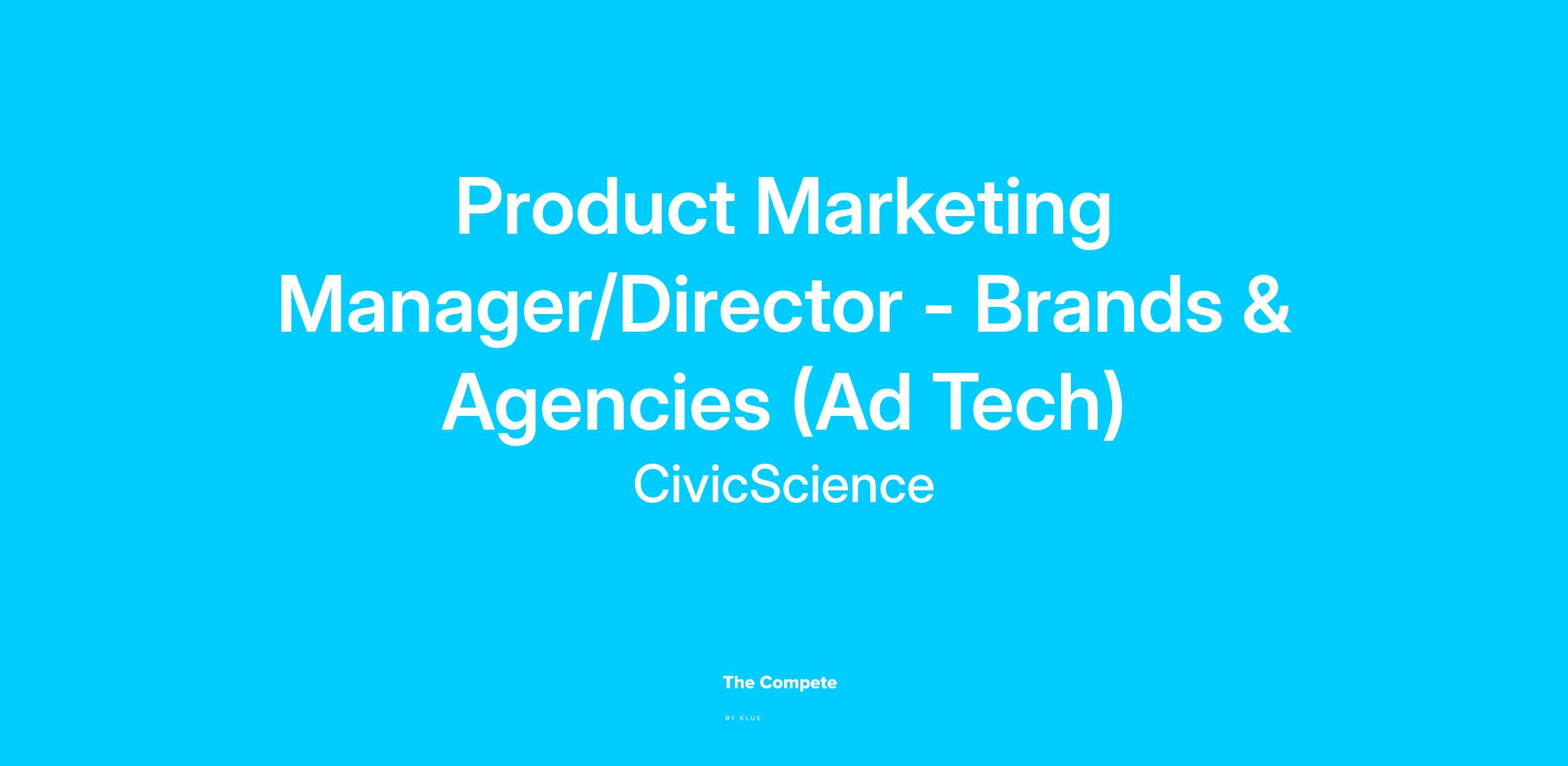 CivicScience improves data-driven advertising across the open web through the use of declared consumer intent. We are looking for a detail-oriented Product Marketing Manager/Director to join our team and improve the speed, clarity, and quality of messaging to our prospective clients at brands and agencies.