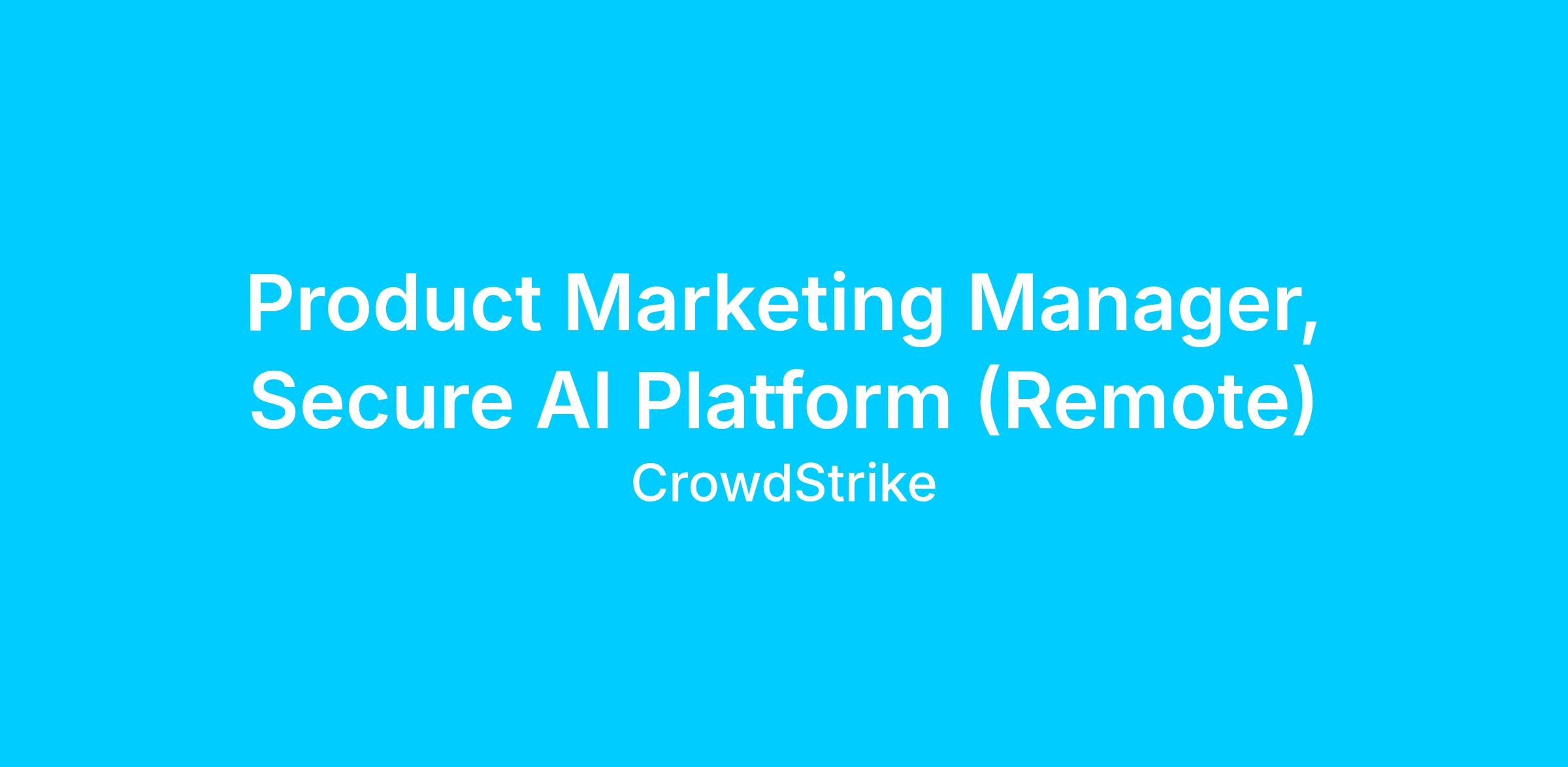 As a Product Marketing Manager for Secure AI Pl atform, you will shape how organizations protect their AI development, deployment and adoption and drive CrowdStrike's mission to stop breaches in the AI era.