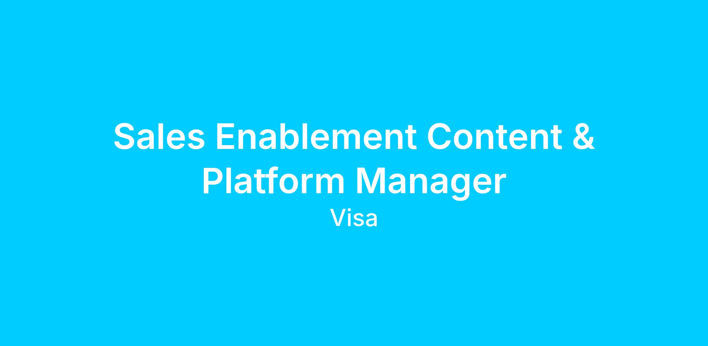 Sales Enablement strategically sits within Visa’s Global Sales & Commercial Operations (GSCO) and focuses on ensuring our sales teams are enabled optimally. To this end, we champion creating, delivering, and driving impactful sales initiatives through knowledge and training to empower sellers to sell, sell, sell. The Sales Enablement Content and Platform Manager role will focus on owning and supporting activities around content strategy and optimization, standardizing metrics, actionable insights, seller engagement, content governance, Search and reach, actively collaborating with our cross-functional partners.