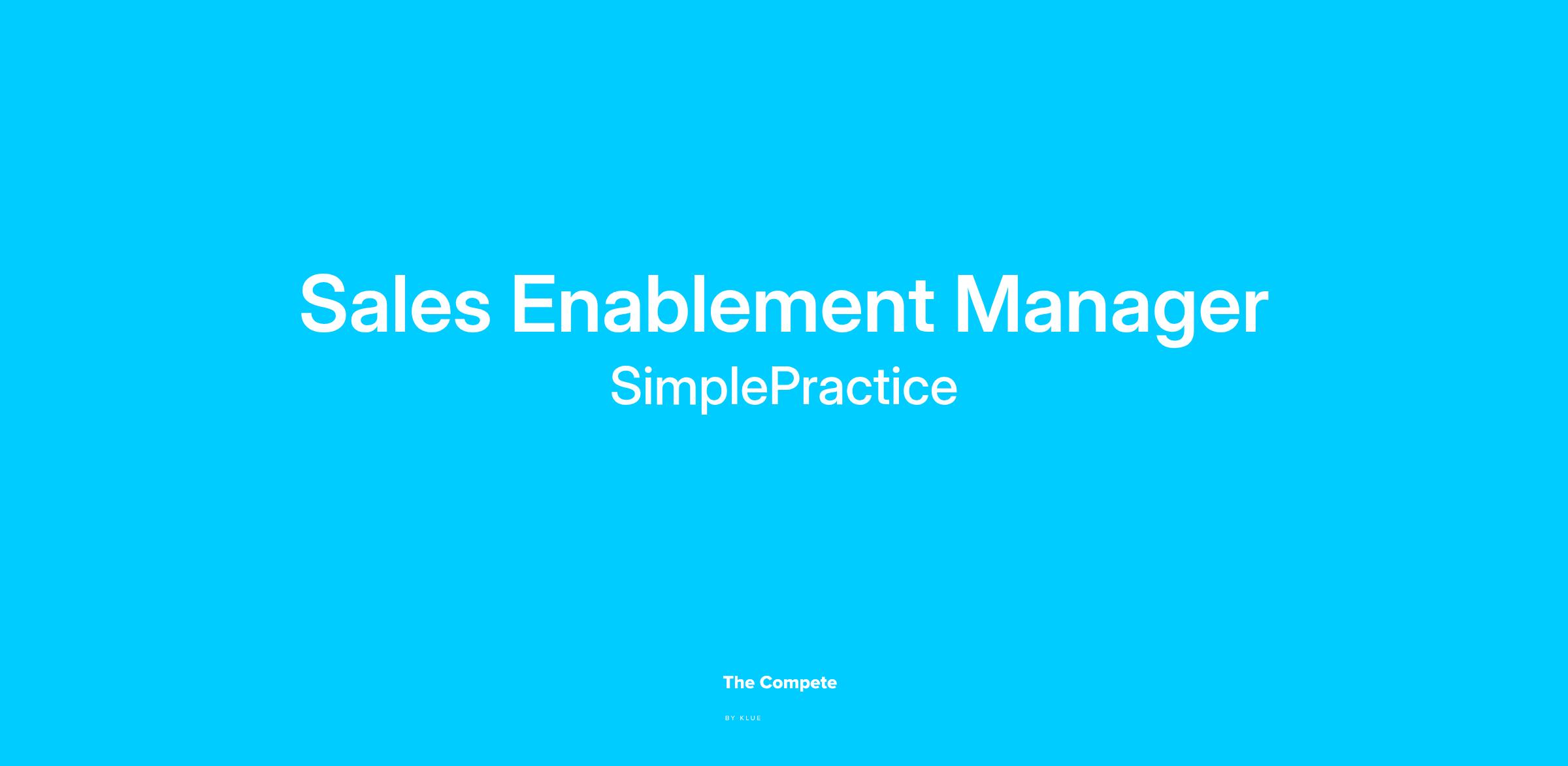 - Build and maintain the "SimplePractice Sales Playbook" as the single source of truth for our sales process.