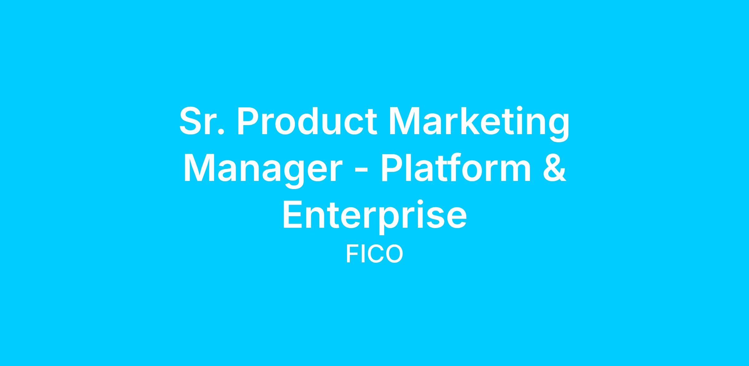 “FICO is seeking a highly motivated Product Marketing Manager to amplify and support our enterprise platform story and go-to-market strategy. This role will help to define and effectively communicate the Why Change, Why FICO, and Why Now value story for FICO Platform, one our most strategic offerings. We’re looking for determined, collaborative professionals who can synthesize sales feedback, customer signals, and product nuance with accuracy and clarity. You’ll work closely across product, sales, and marketing teams to support go-to-market strategies, shape platform narratives, and drive messaging adoption and enablement. This role requires the ability to understand the needs of different internal and external audiences and translate complex, technical concepts into materials that resonate.” – Product Marketing - Director