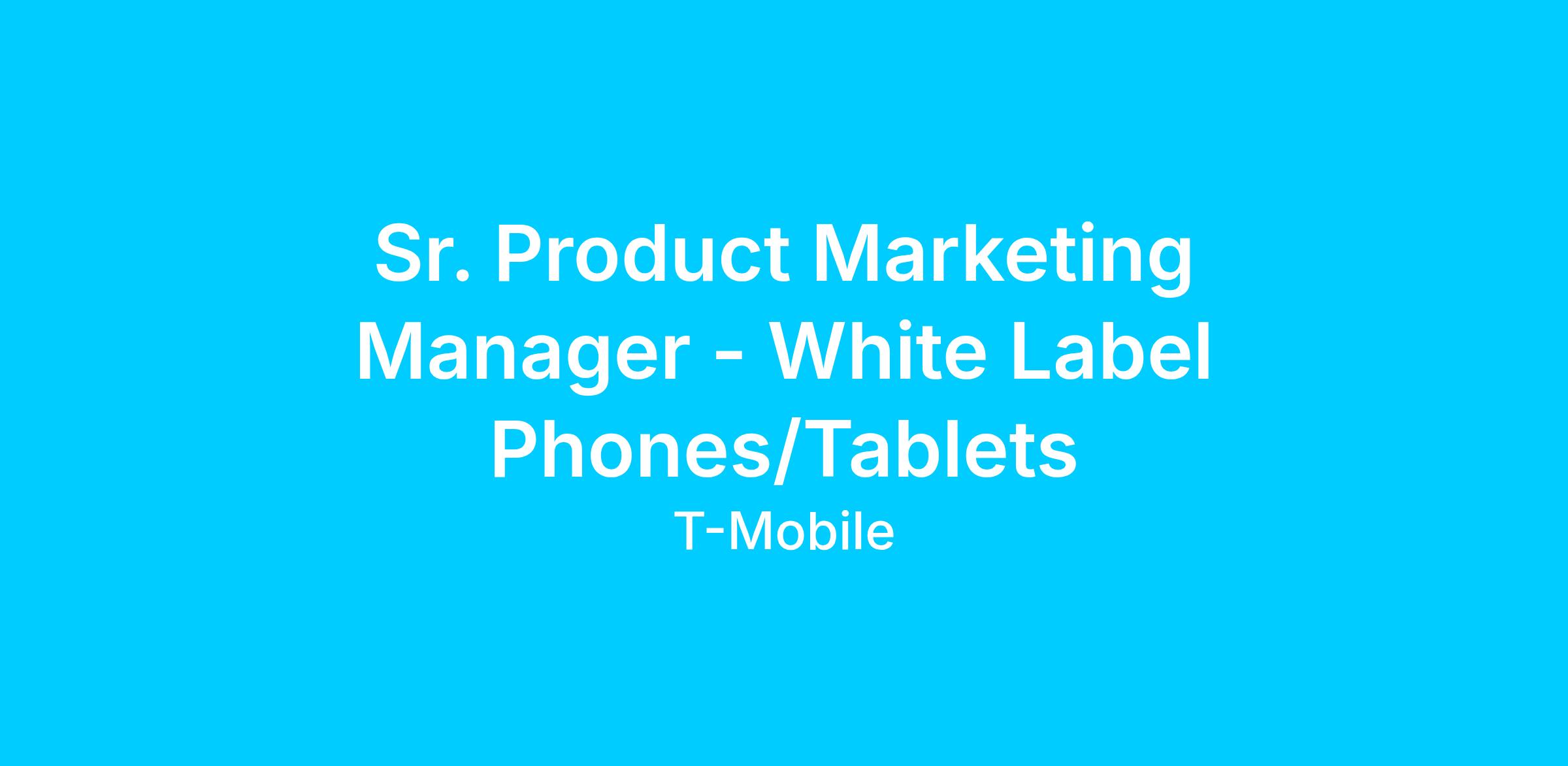 The Sr. Product Marketing Manager – Phones & Tablets is accountable for the end-to-end definition, positioning, lifecycle management, and in-market success of T-Mobile’s private label smartphone and tablet portfolio.Responsibilities: